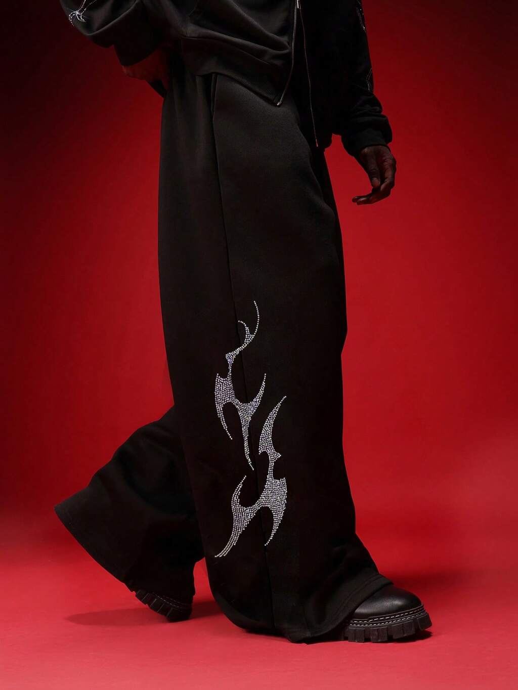 Baggy Joggers With Rhinestone Flame Pattern