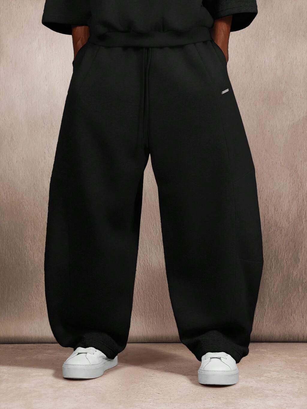 Drop Crotch Sweatpants With Elastic Ankles And Side Pockets