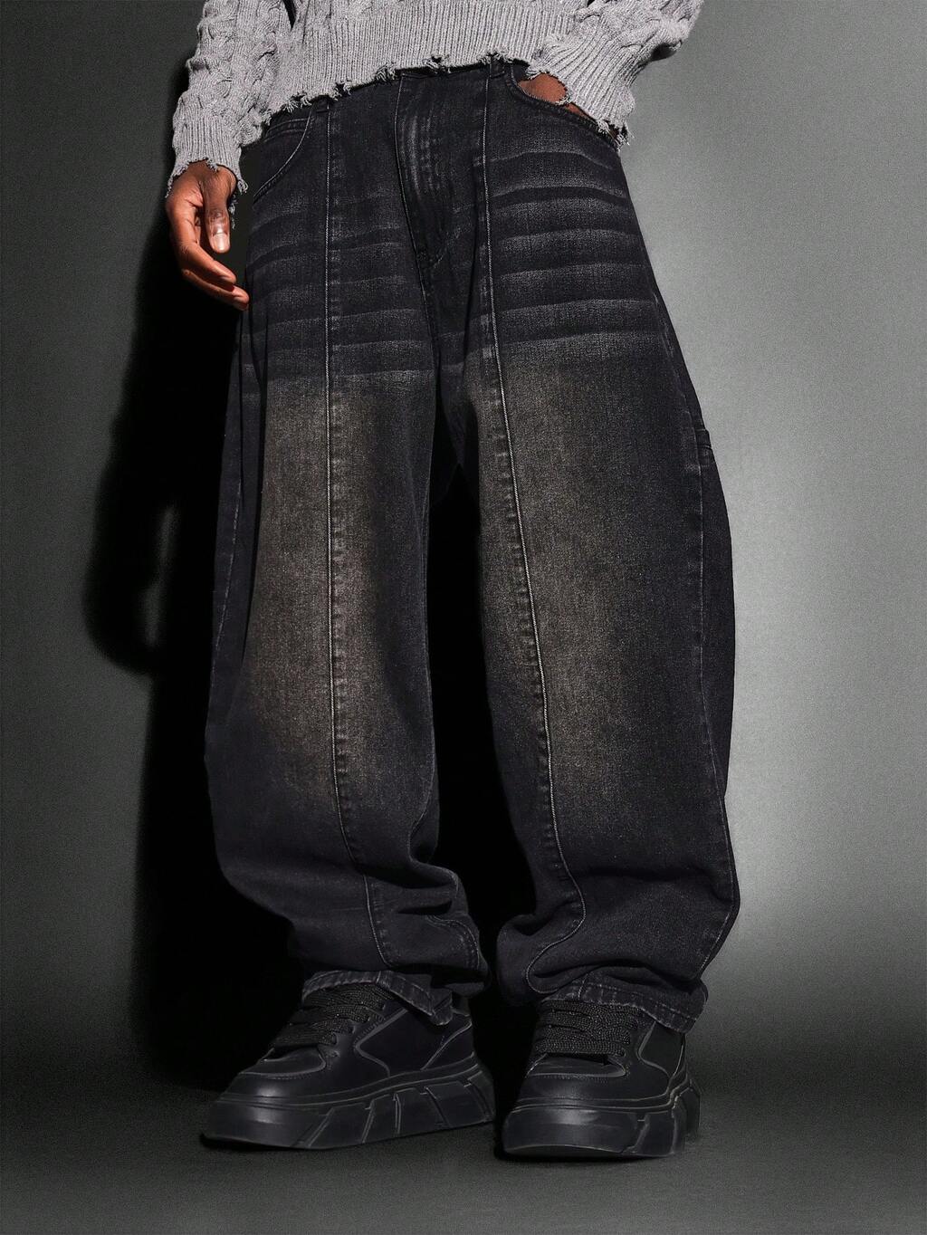 Paneled Balloon Fit Jeans With Geometric Seaming