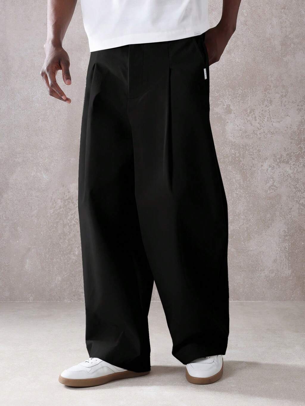 Loose Fit Pleated Linen Wide Leg Men Suit Pants