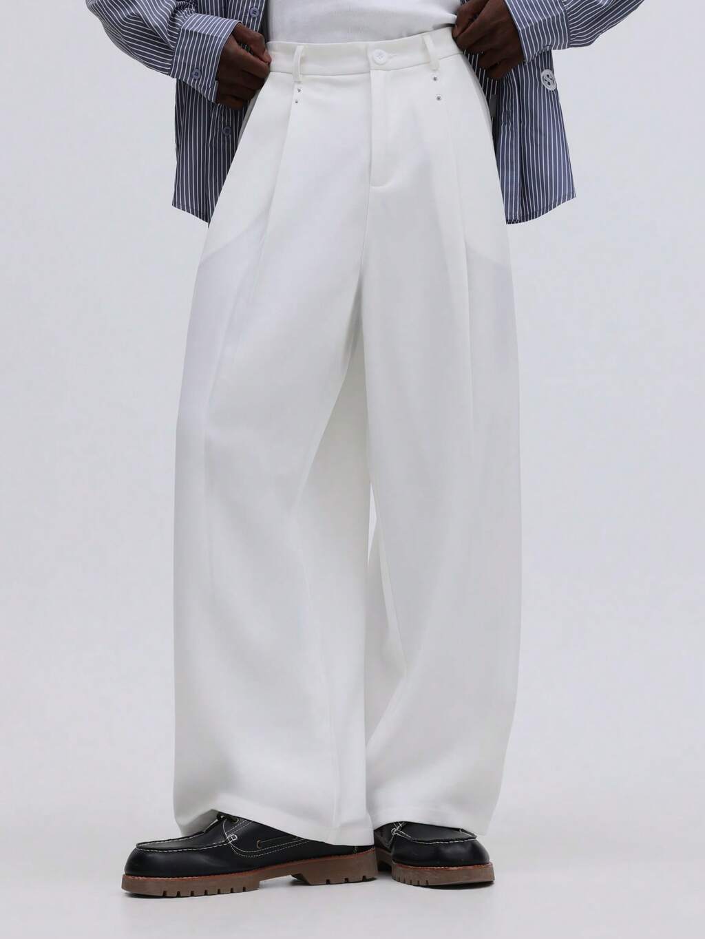 Wide Leg Suit Pants With Button Details