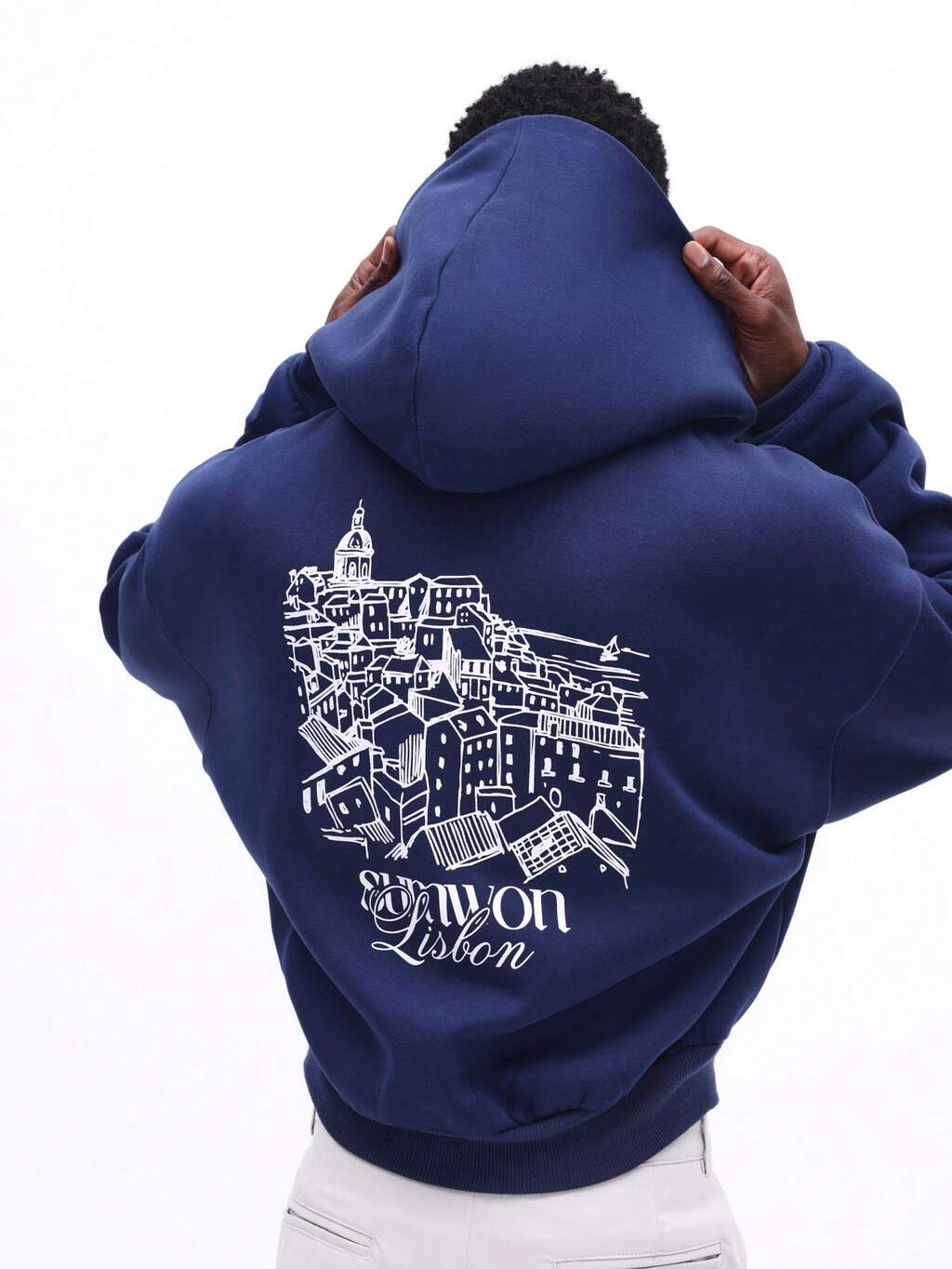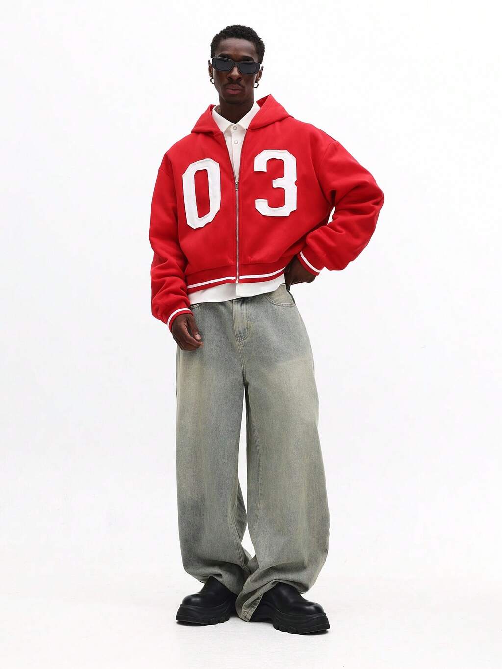 Full Zip Hooded Sweatshirt With Varsity Back Print
