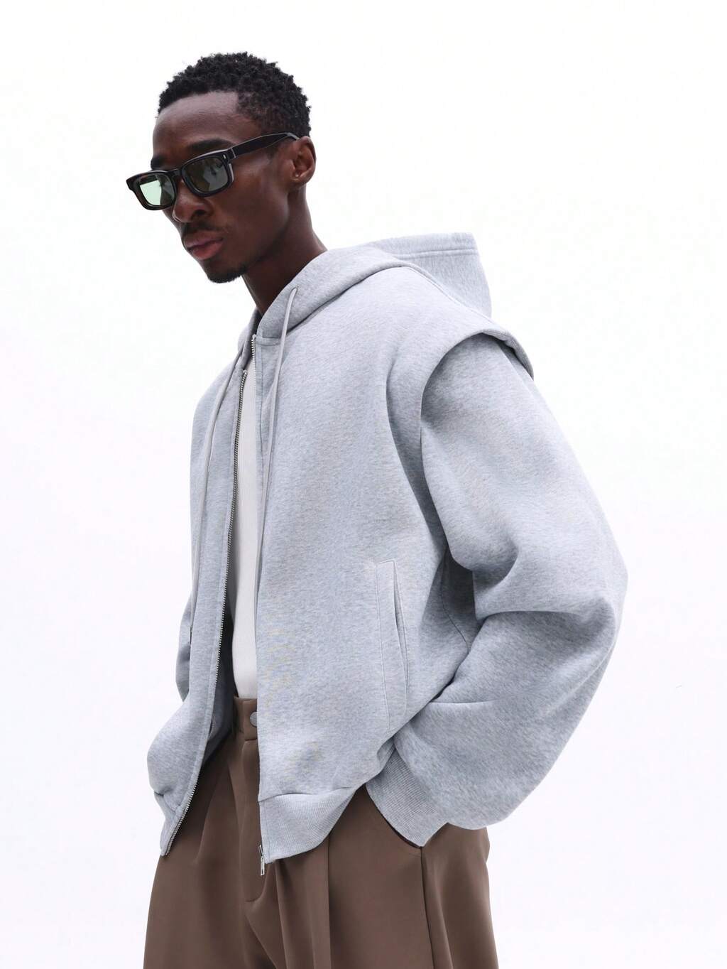 Essential Boxy Fit Fleece Zip Up Hoodie With Split Pockets