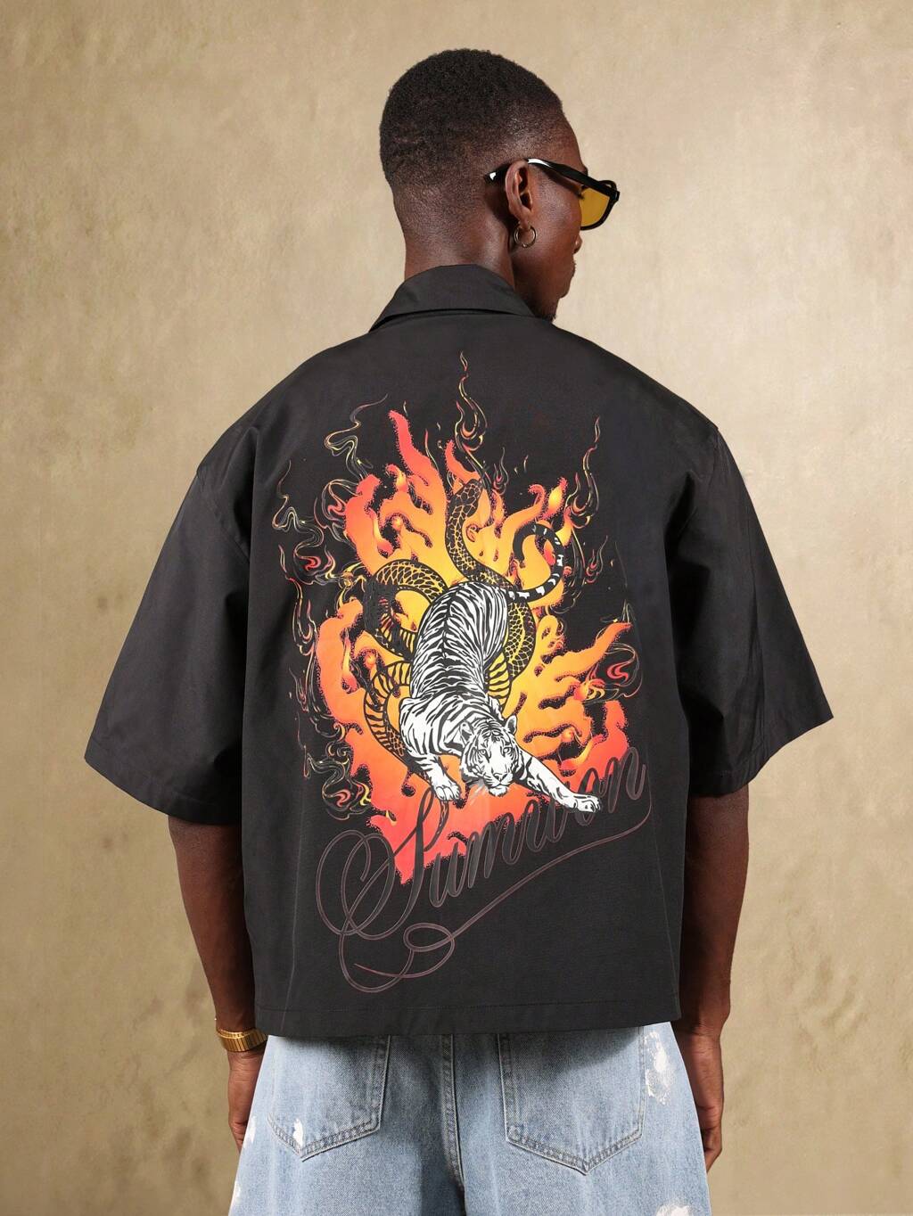 Oversized Street Style Dragon Tiger Graphic Shirt
