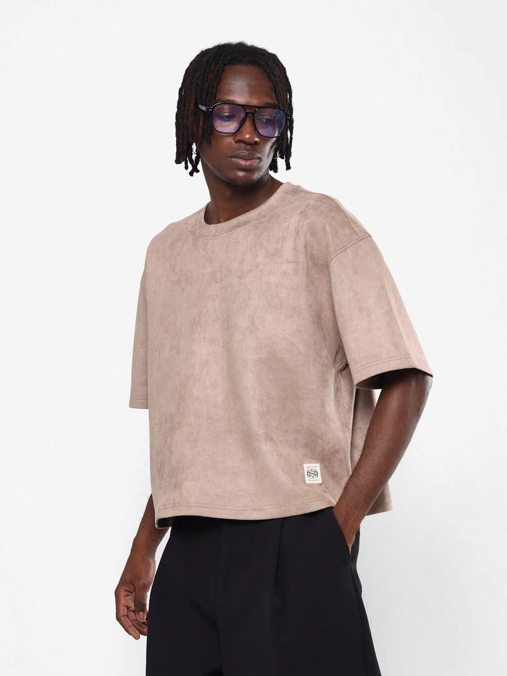 Suede Effect Boxy T-Shirt With Short Sleeves