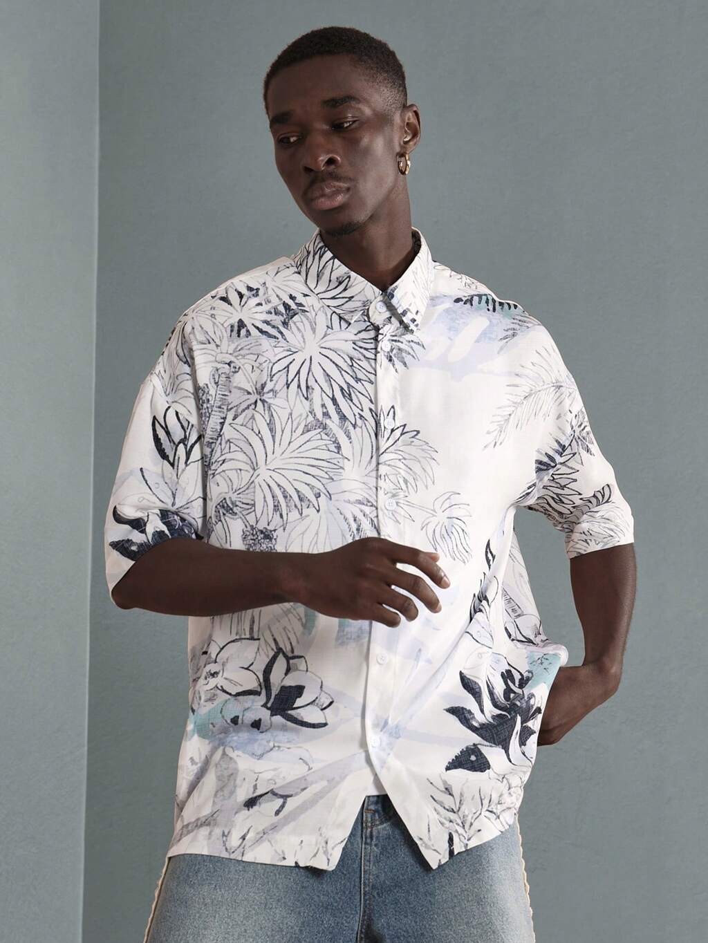 Relaxed Fit Revere Collar Shirt With All Over Print