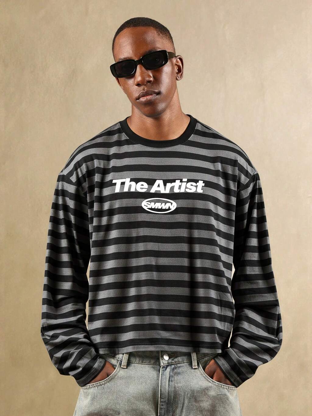 Men Oversized Classic Comfort Long Sleeve Arabic Script Graphic T-Shirt