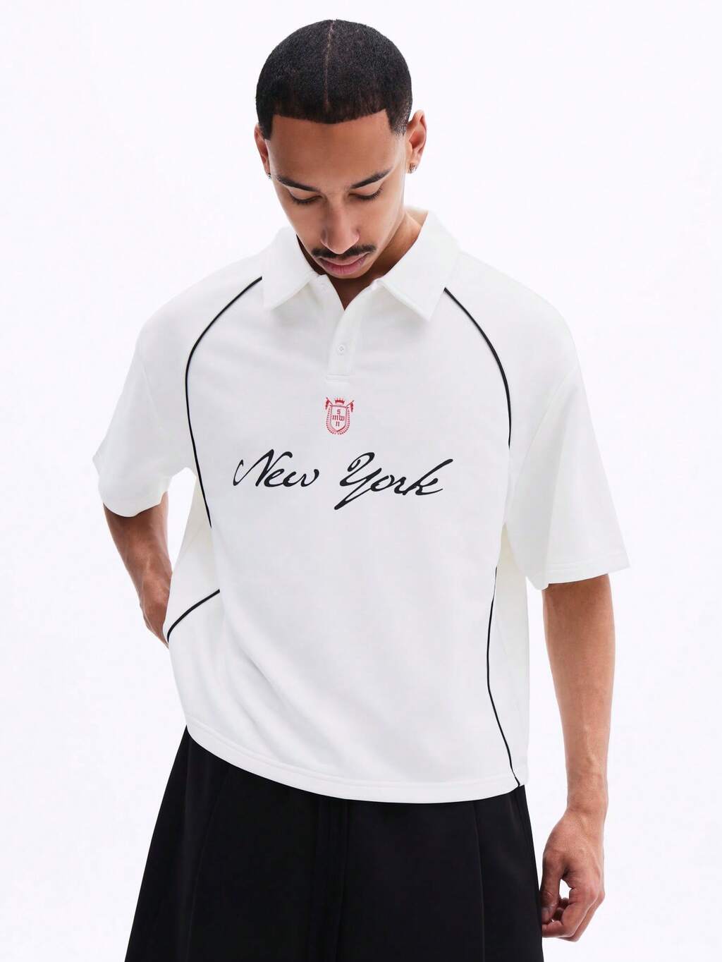 Box Fit Short Sleeve Tennis Society Polo Shirt Vertical Stripes Chest Logo Print For Casual Summer Wear