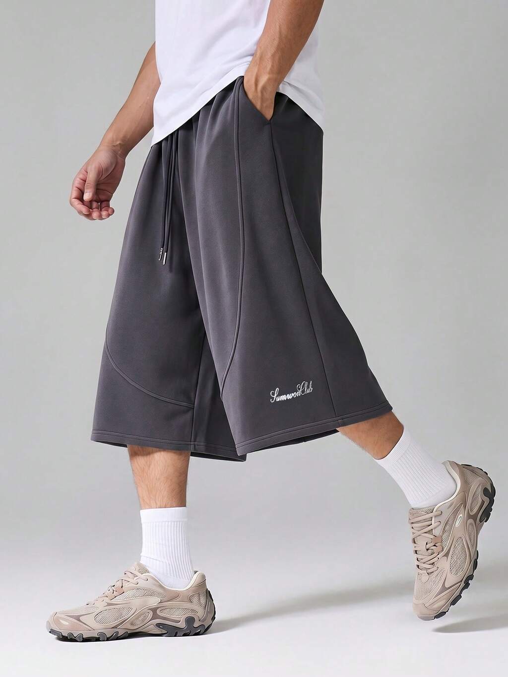 Charcoal Drawstring Wide Leg Oversized Casual Basketball Streetwear Loungewear Shorts With Curved Seam Detail