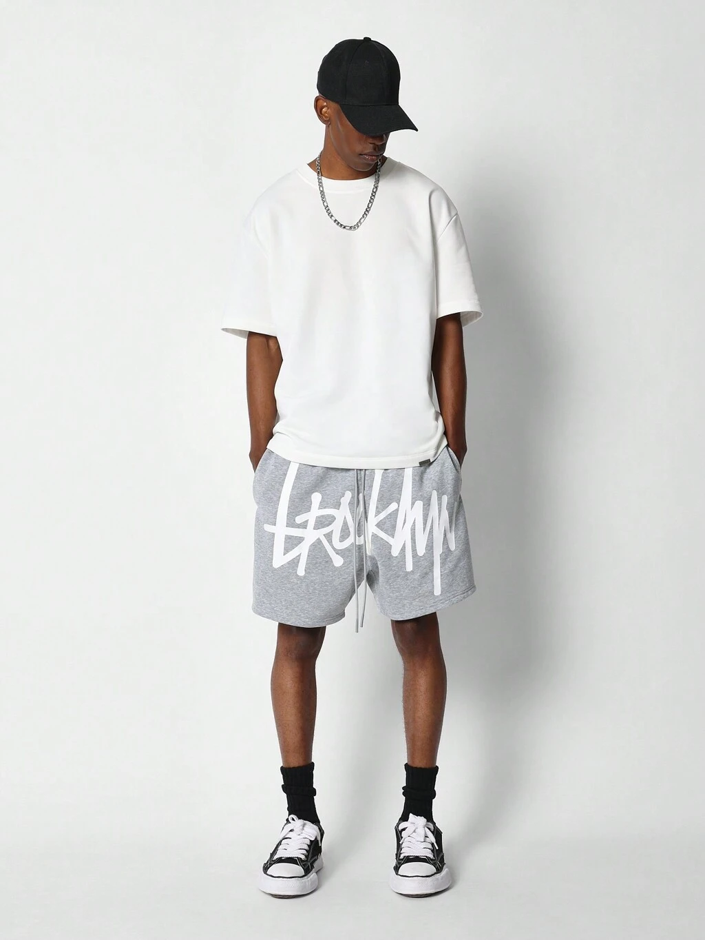 Printed Drop Crotch Shorts With Graffiti Text