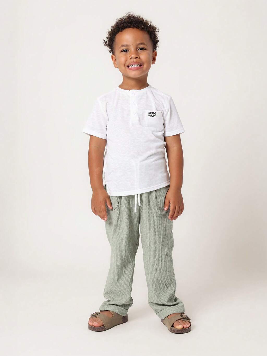 Boys Casual Crew Neck T-Shirt And Cheesecloth Pants Set