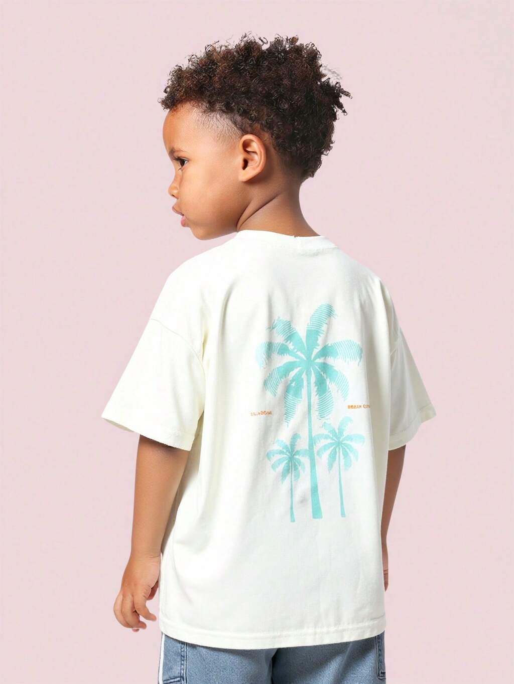 Young Boys Palm Tree Rainbow Graphic Oversized T-Shirt And Striped Shorts Summer Casual Set