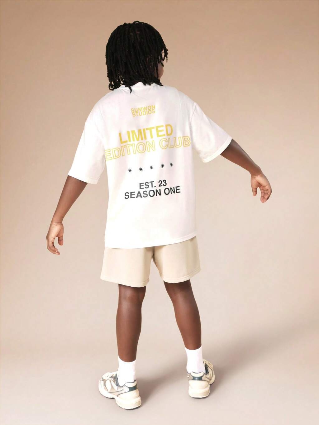 Boys Players Soccer Football Society Crew Neck Short Sleeve T-Shirt And Elastic Waist Shorts Two Piece Casual Summer Co-Ord Set