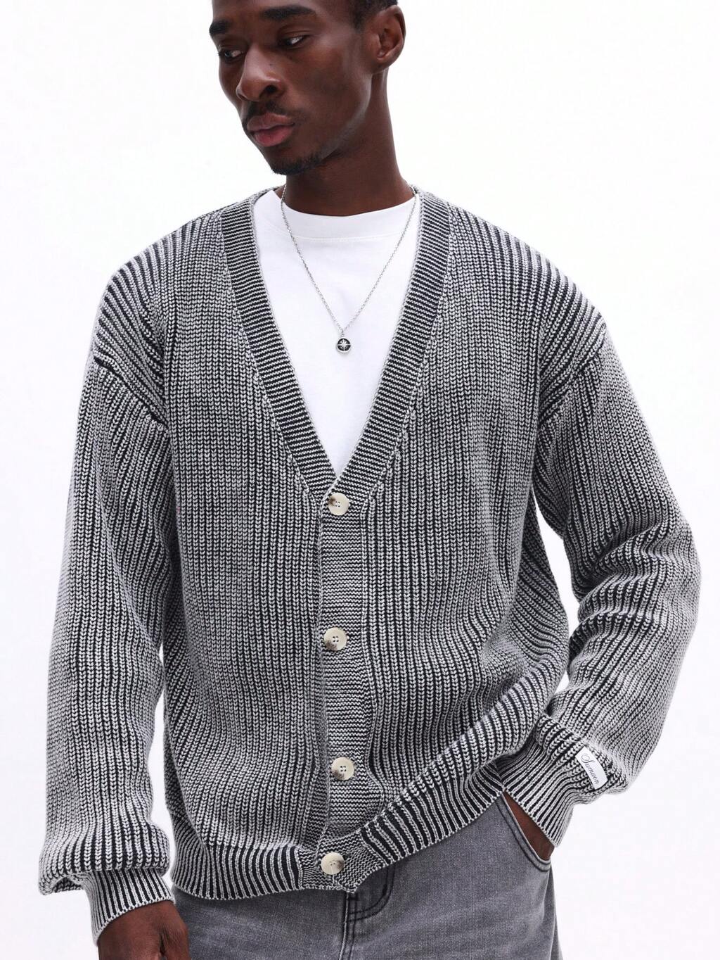 Button Up Striped Cardigan With Embroidered Gothic Letter