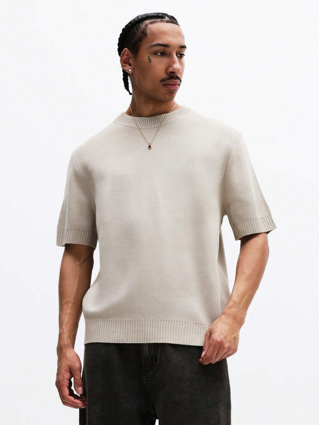 Men's Boxy Fit Open Knit V-Neck Short Sleeve Top With Tie Dye Effect Pattern Summer Casual Lightweight Pullover Knitted Shirt