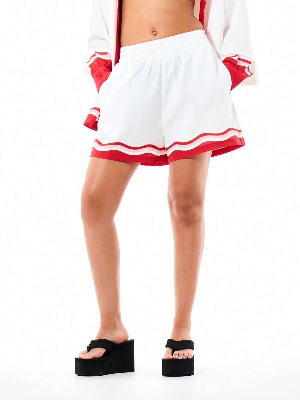 SUMWON WOMEN White Shorts With Red Striped Trim