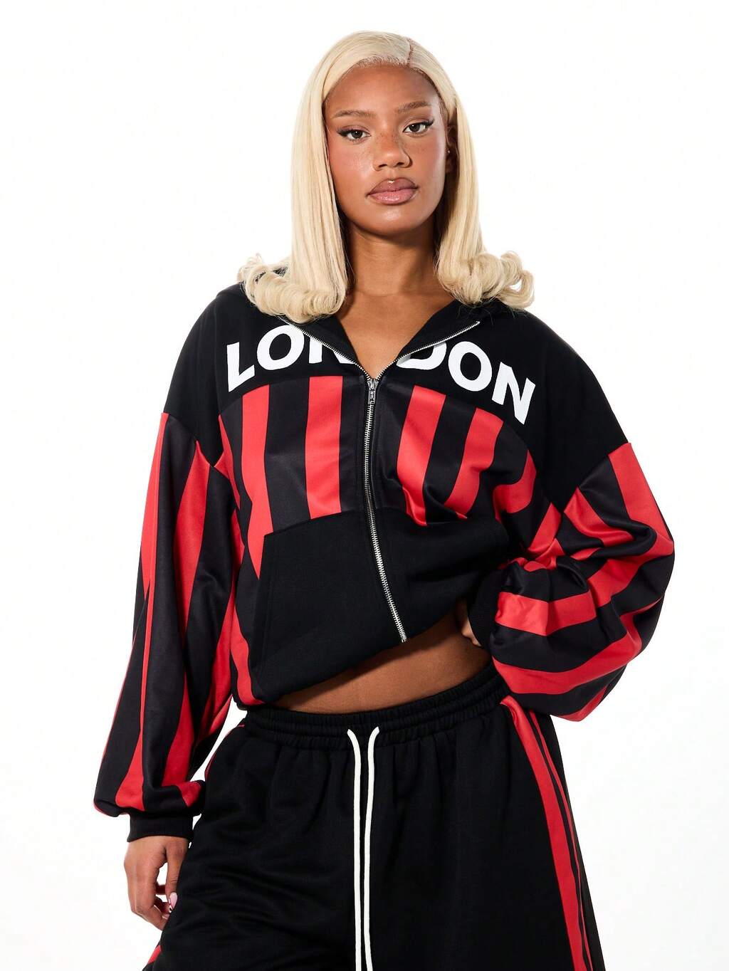SUMWON WOMEN Oversized Striped Full Zip Hoodie