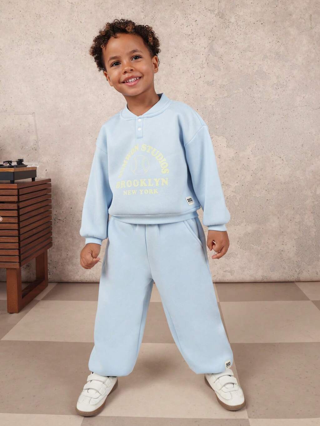Young Boys Comfy Raglan Sweatshirt With Graphic Print And Jogger 2 Piece Set