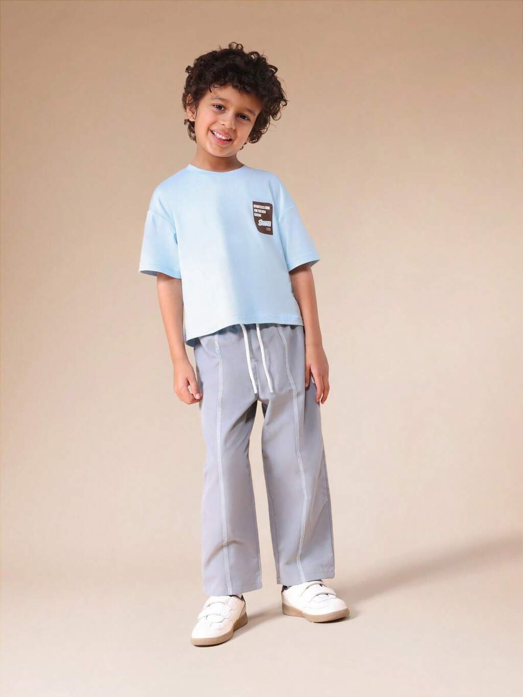 Boys Summer Co-Ord Set With Printed Text Short Sleeve T-Shirt And Drawstring Jogger Pants Casual Comfortable Two Piece Outfit