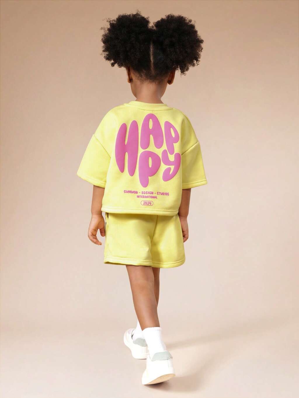 Girls Oversized Crop Sweatshirt And High Rise Shorts Set With Lifestyle Statement Print Back Casual Coordinate Outfit Spring Summer