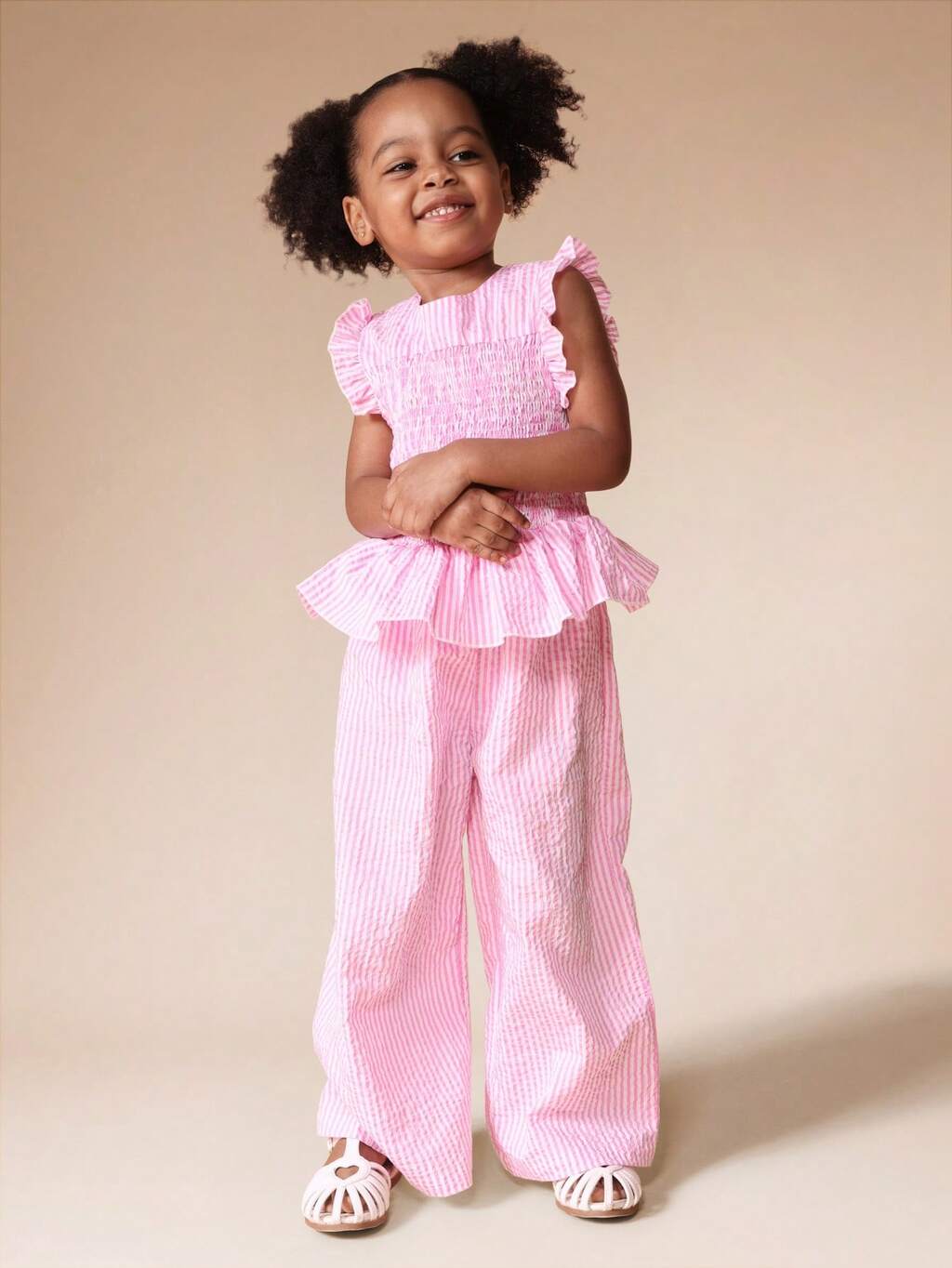 Smocked Stripe Tank And Wide Leg Pant Set