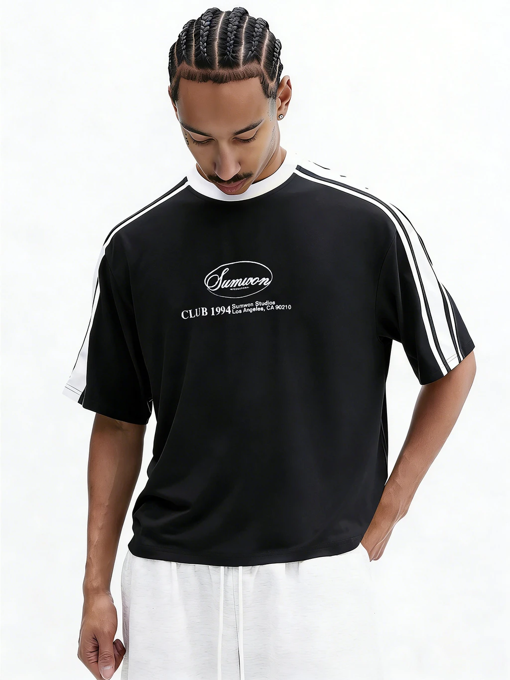 Men's Vintage Style Crew Neck Short Sleeve T-Shirt With Retro Club 1994 Los Angeles Print And Contrast Striped Sleeves, Oversize T Shirt Men, Brand T Shirt, Racing Tshirt
