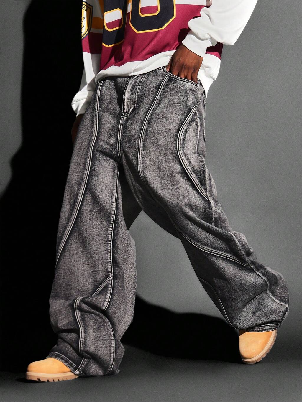 Baggy Paneled Wide Leg Jeans With Contrast Stitching