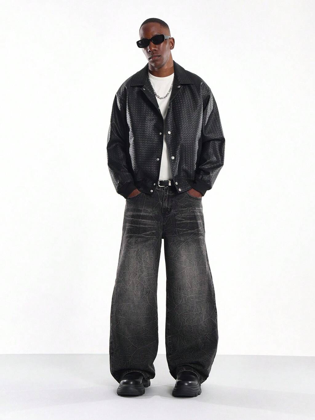 Crochet Textured Oversized Short Sleeve Men T-Shirts