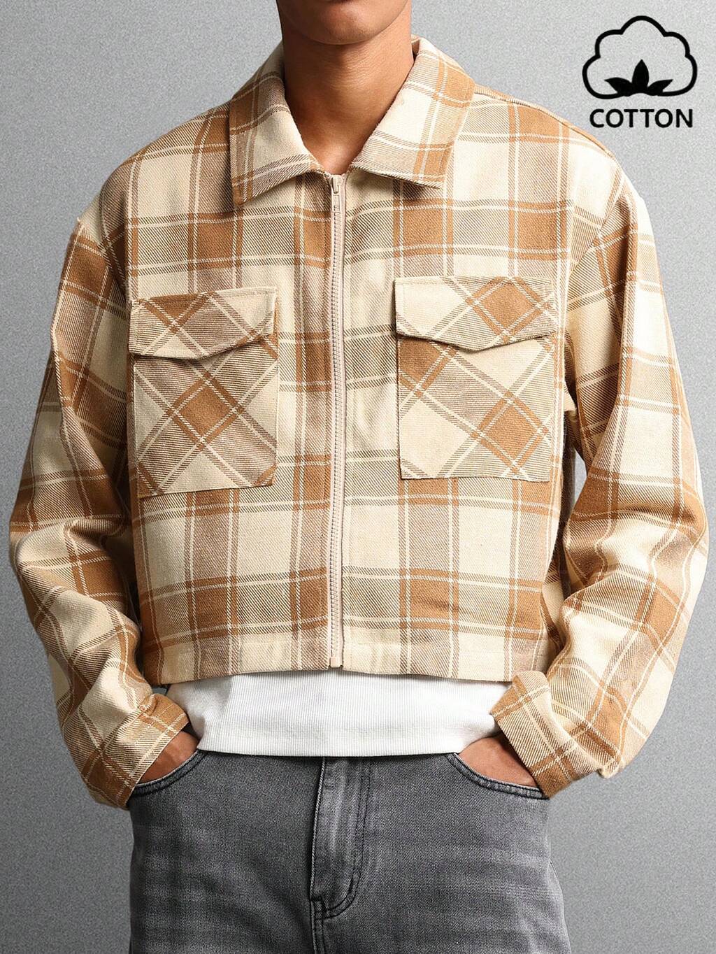 Plaid Zip Front Jacket With Flap Pockets