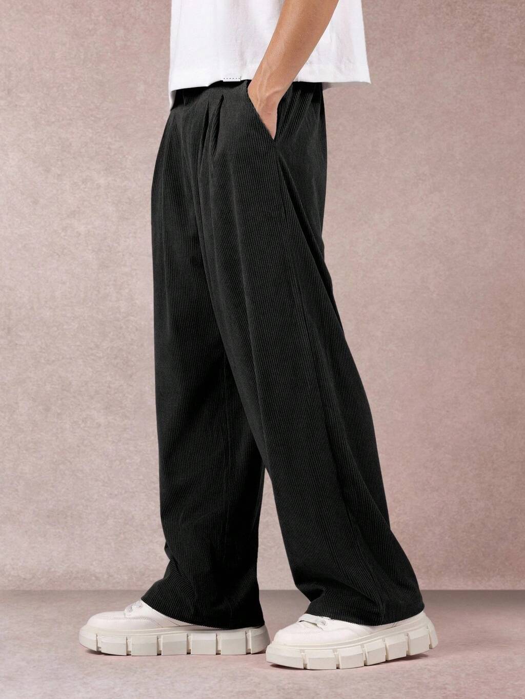 Wide Leg Corduroy Pants With Pleated Detail