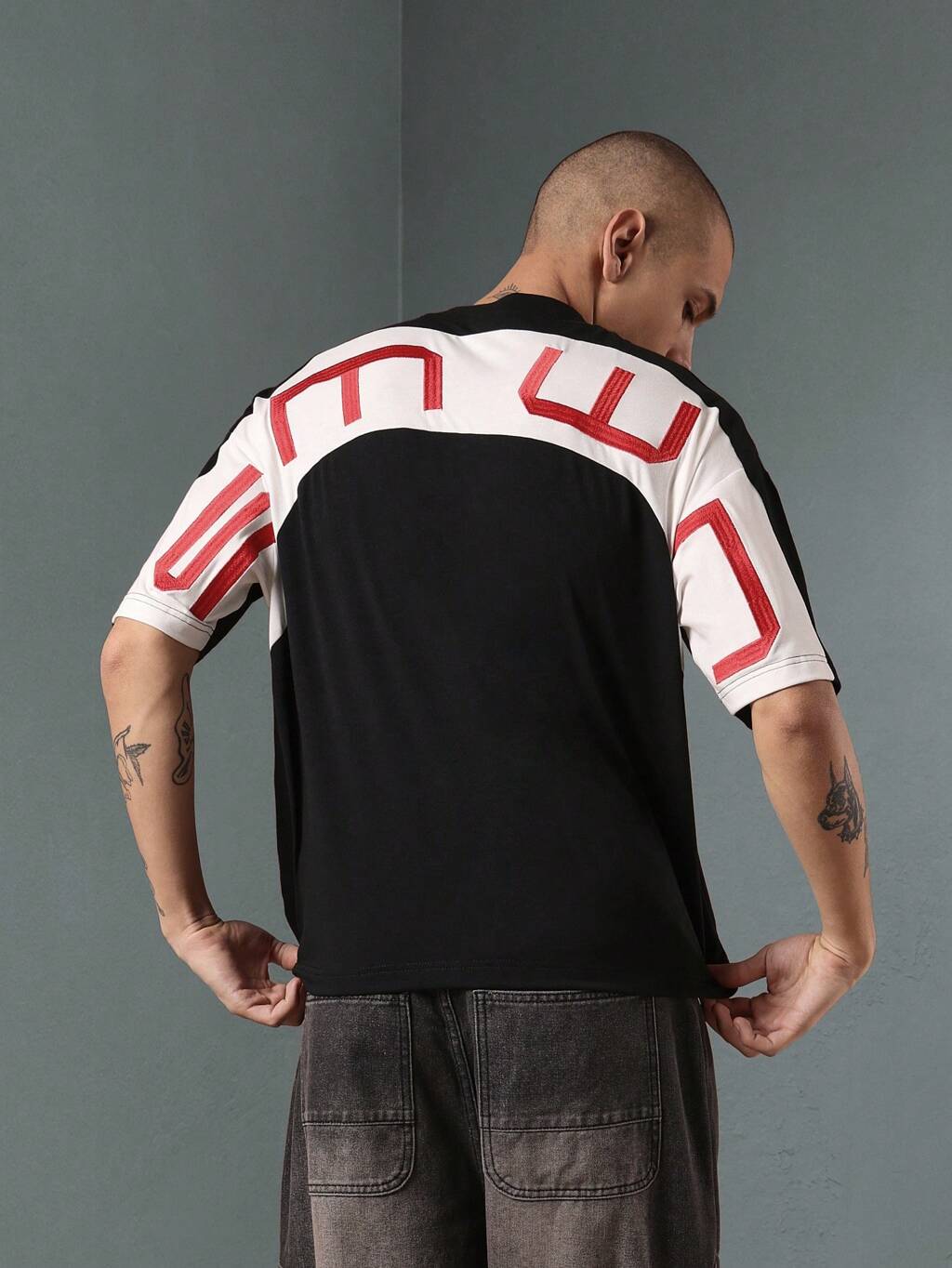 Streetwear Two-Tone Shoulder Panel T-Shirt