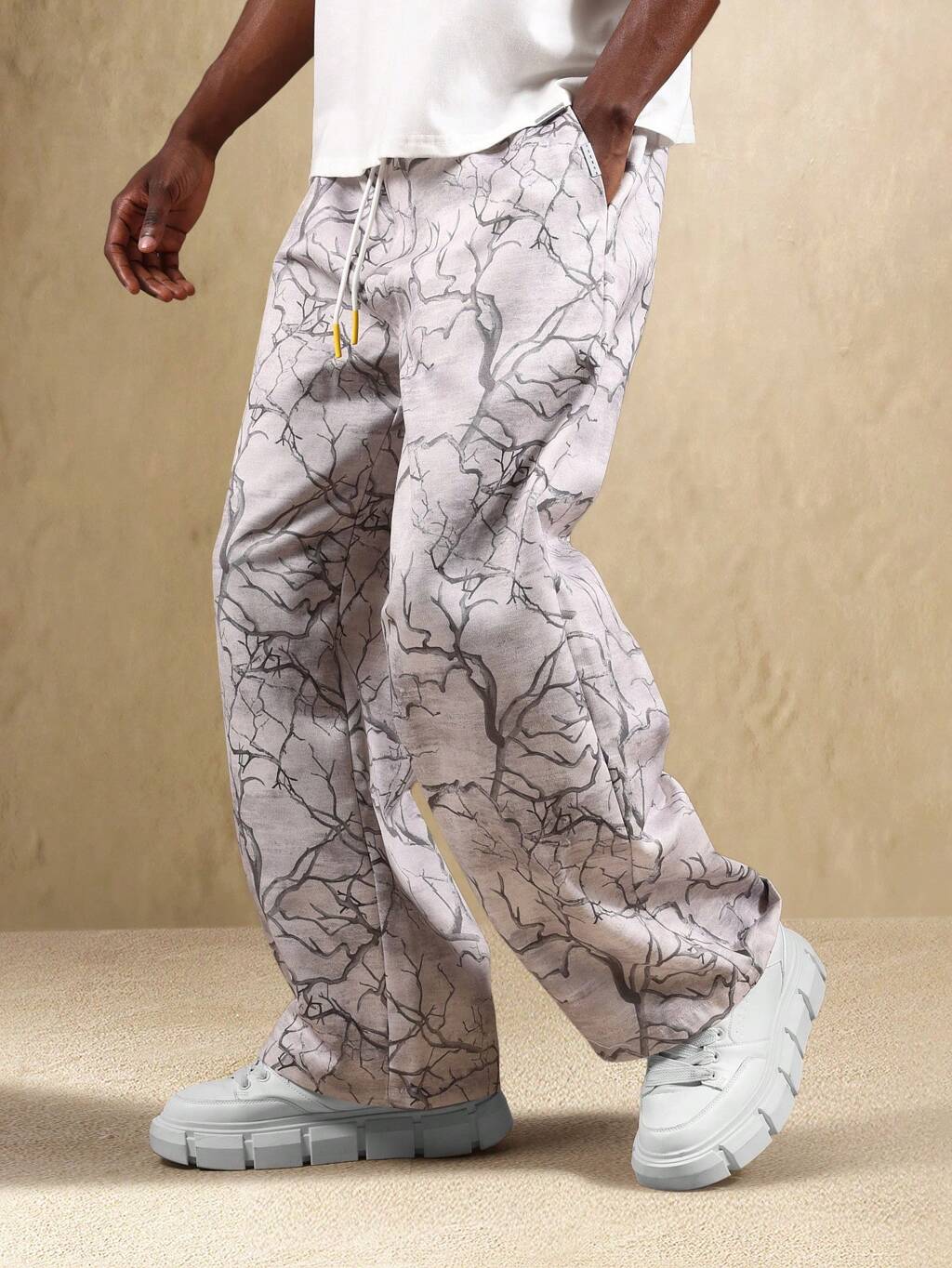 Printed Marble Pattern Pull On Wide Leg Loungewear Pants