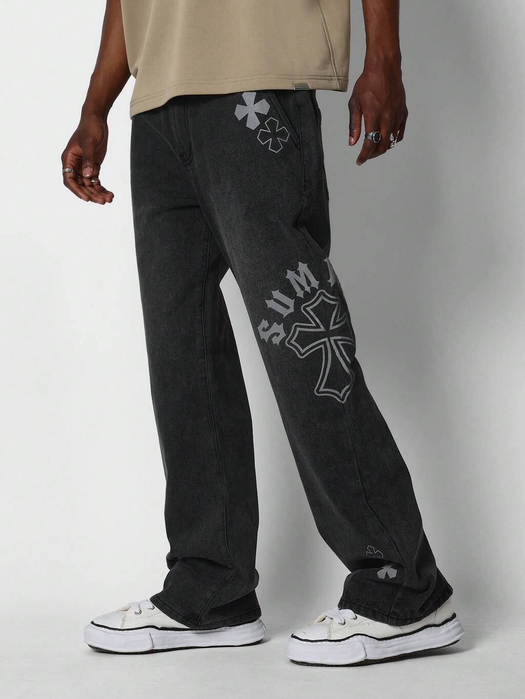 Gothic Cross Pattern Full Zip Hoodie With Centre Pocket