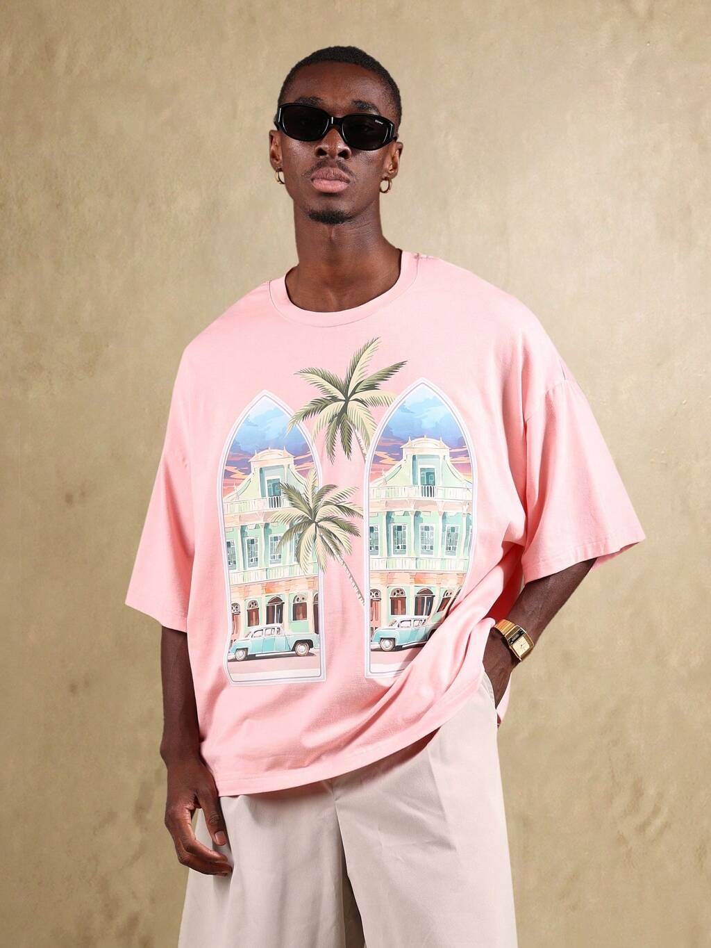 Retro Miami Beach Graphic Palm Tree Architecture Print Tee
