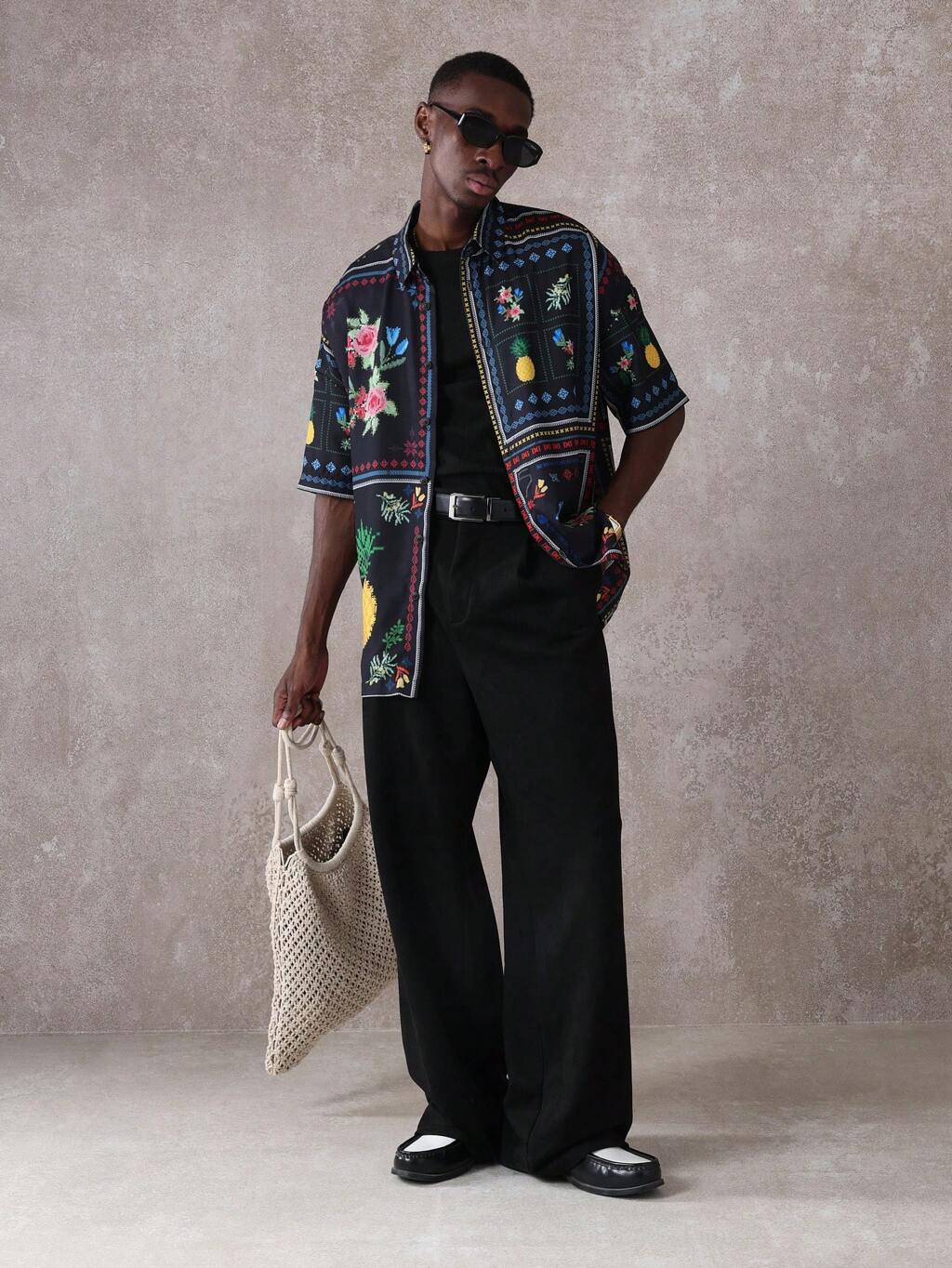 Short Sleeve Button Down Floral Pineapple Print Retro Casual Shirt
