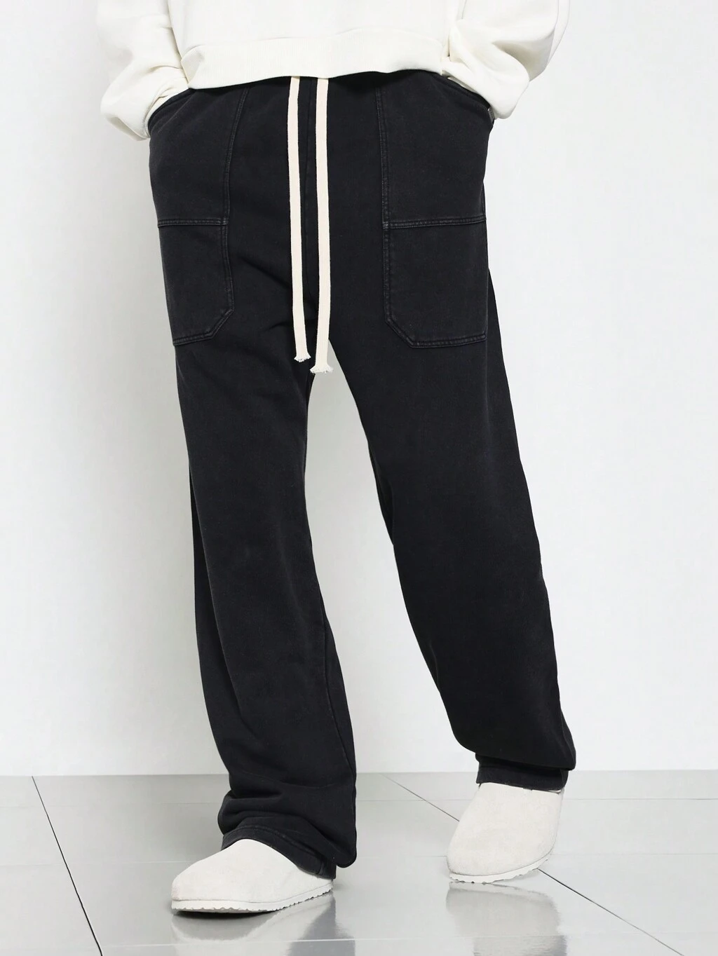 Loose Drop Crotch Joggers With Drawstring Waist And Pockets