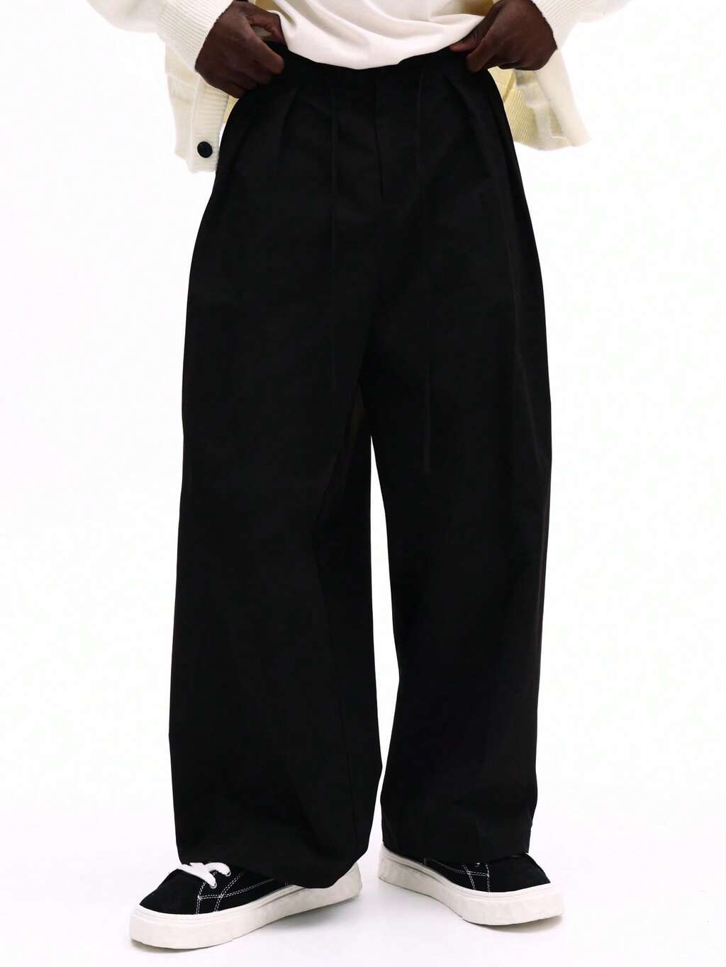 Barrel Fit Wide Leg Casual Pants With Seam Details
