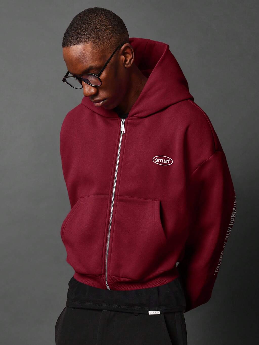 Kastenförmiger Hoodie mit durchgehendem Reißverschluss und Ärmelgrafiken