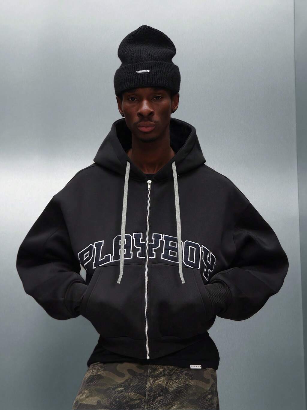 PLAYBOY X SUMWON Kapuzenjacke mit durchgehendem Reißverschluss und Kordelzug