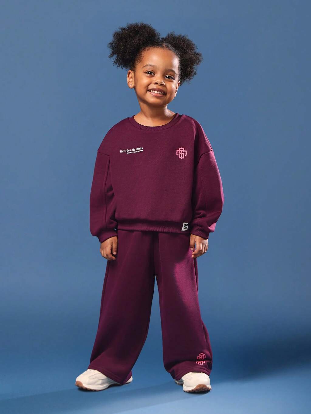 Mintgrünes Sweatshirt und Hose mit weitem Bein und rosa Text im Set