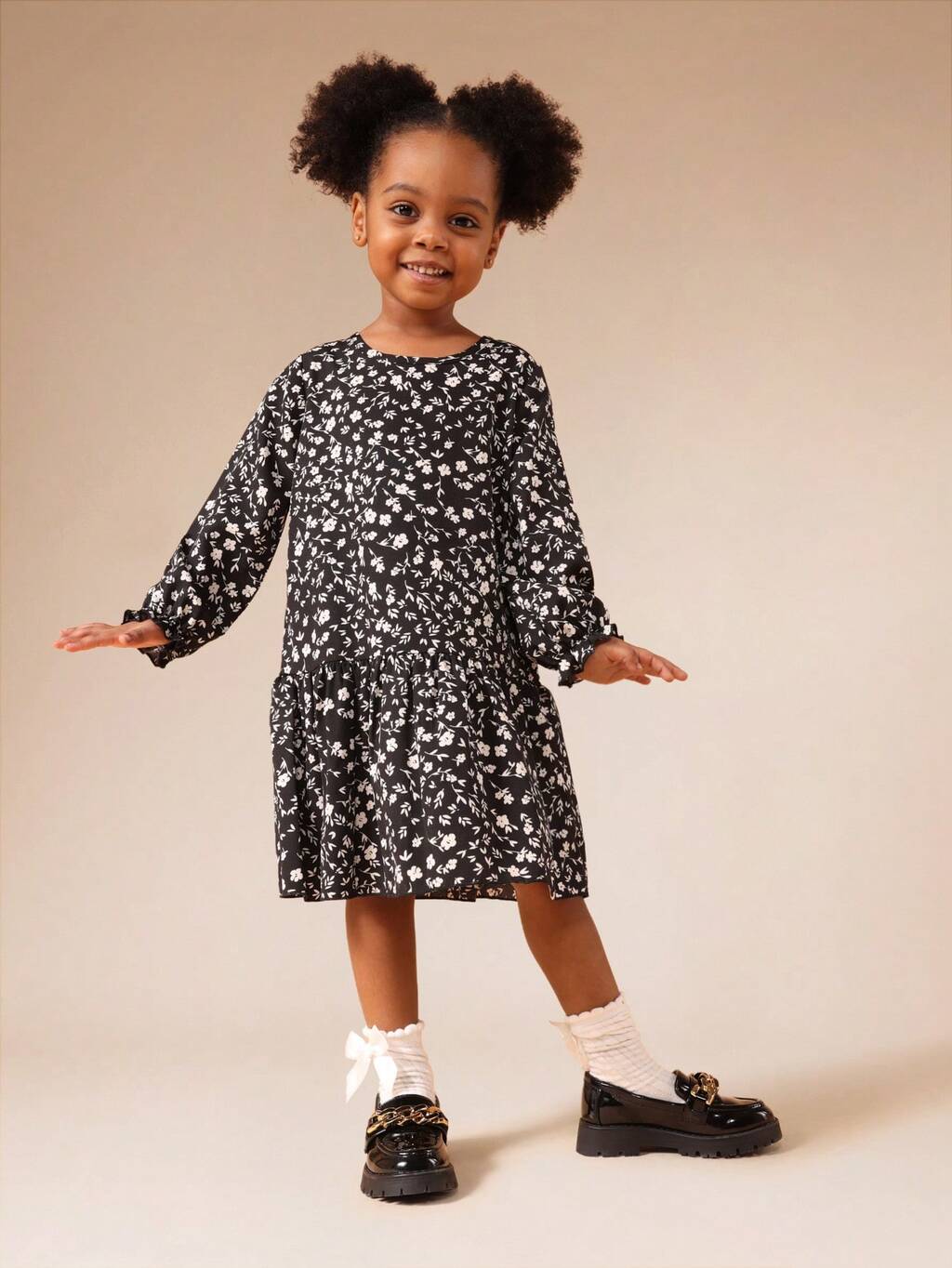 Langärmeliges Kleid mit Blumenmuster und tiefer Taille