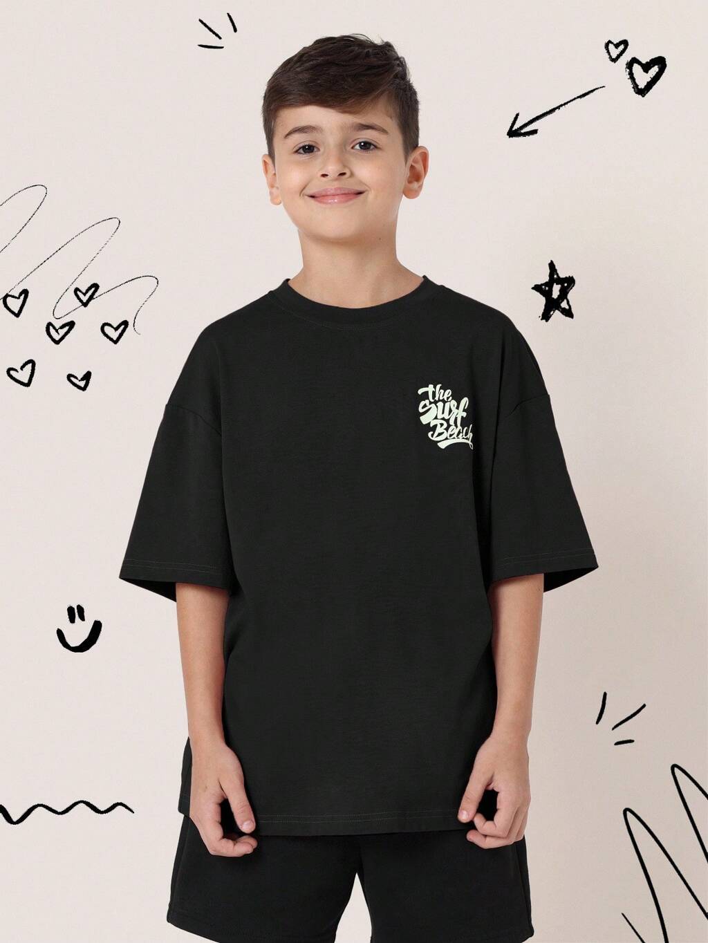Oversized Logo T-Shirt mit kurzen Ärmeln und Rundhalsausschnitt für Jungen Sommer Casual Streetwear