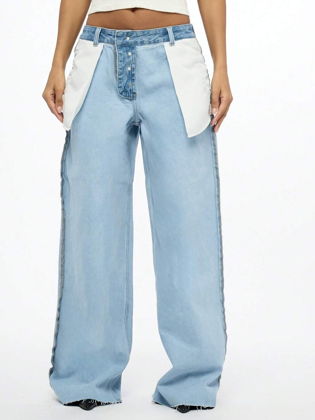 SUMWON WOMEN Inside Out Design – Gerade geschnittene Jeans mit weißem Einsatz und Used-Look und offenem Saum