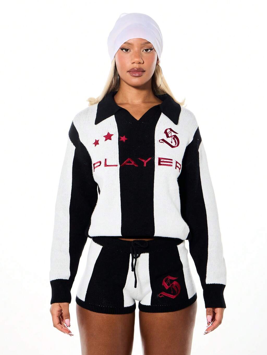 SUMWON WOMEN Gestreifter, kurzer Strickpullover mit Kragen