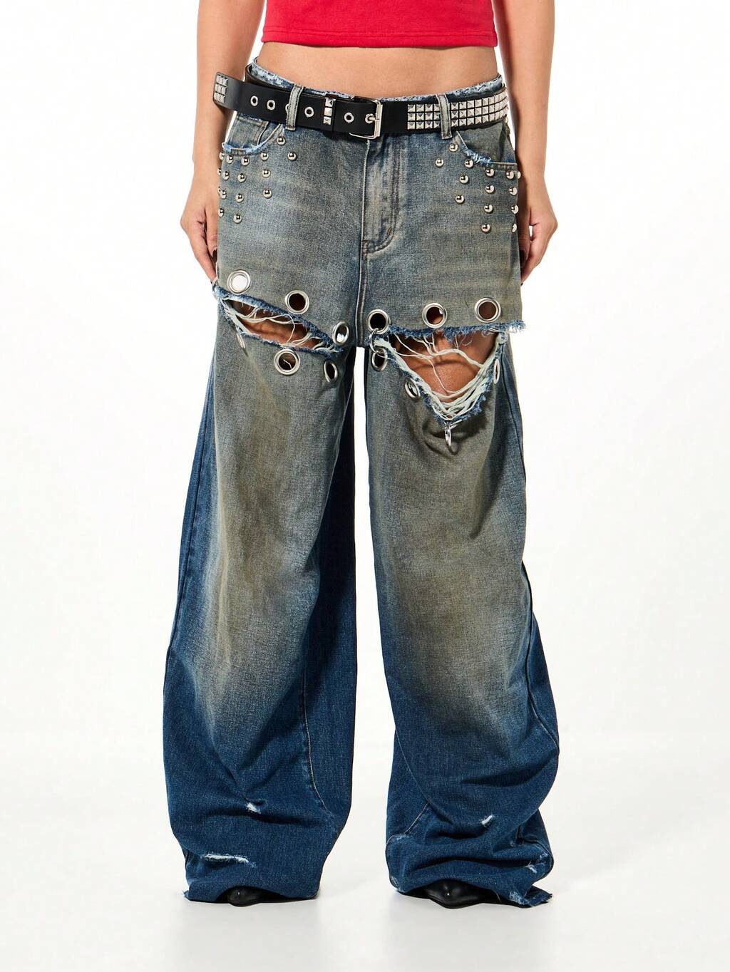 SUMWON WOMEN Nietenbesetzte Baggy Wide Leg Jeans