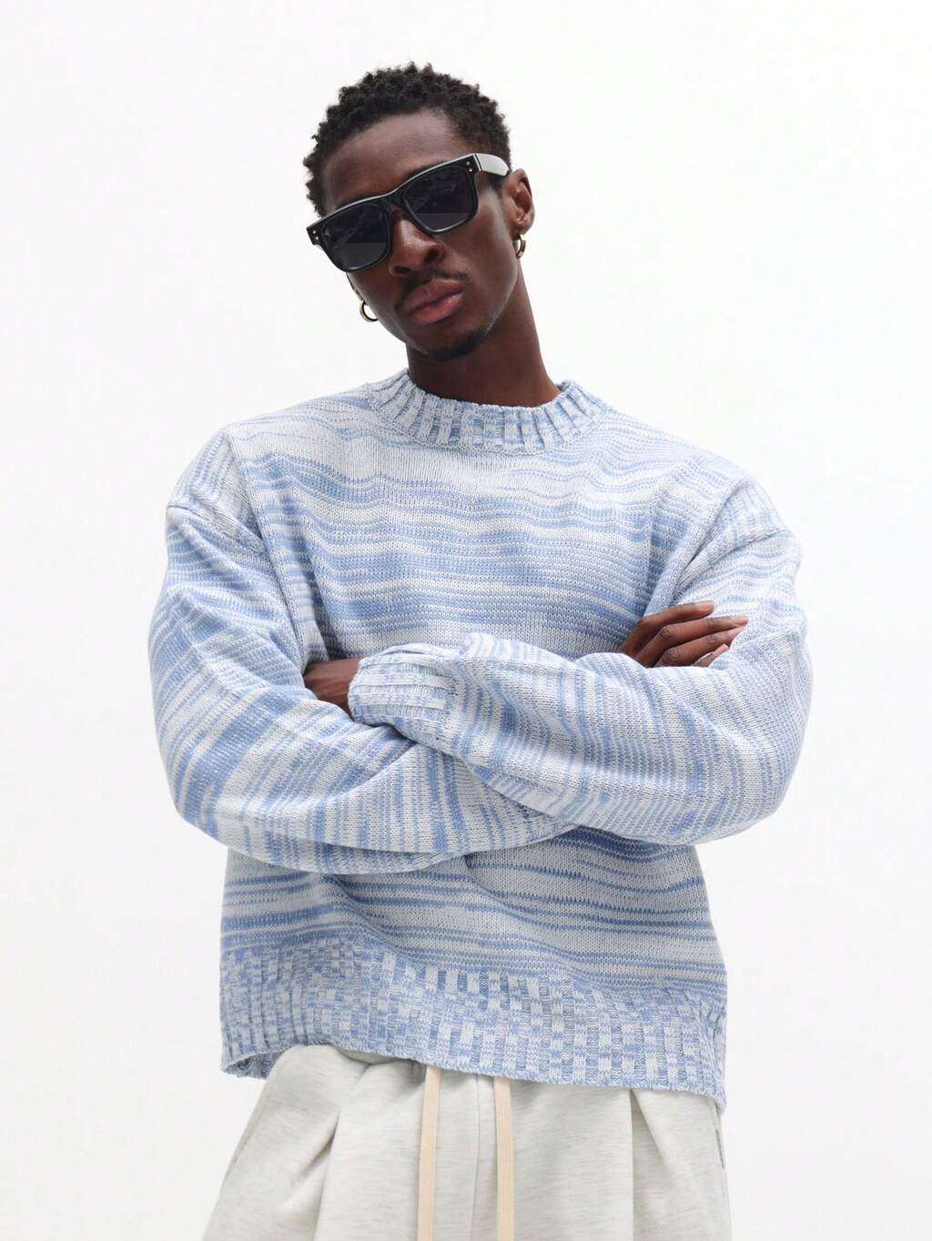Grob gestreifter Strickpullover mit flauschiger Textur