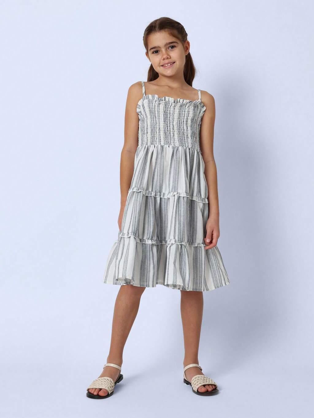 Gestuftes Rüschenkleid mit gesmoktem Oberteil