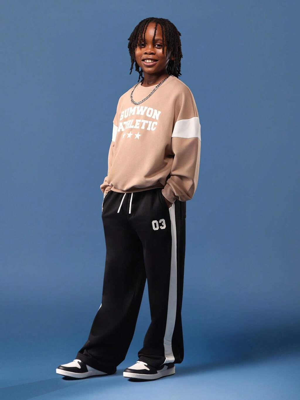 Sweatshirt mit College-Logo und Trainingshose mit weitem Bein