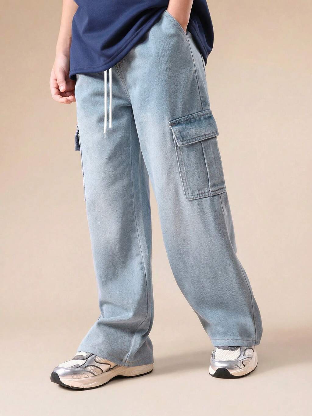 Jungen Jeans in Hellwaschung mit Cargotaschen, Relaxed Fit, weites Bein, Freizeithose für täglichen Komfort