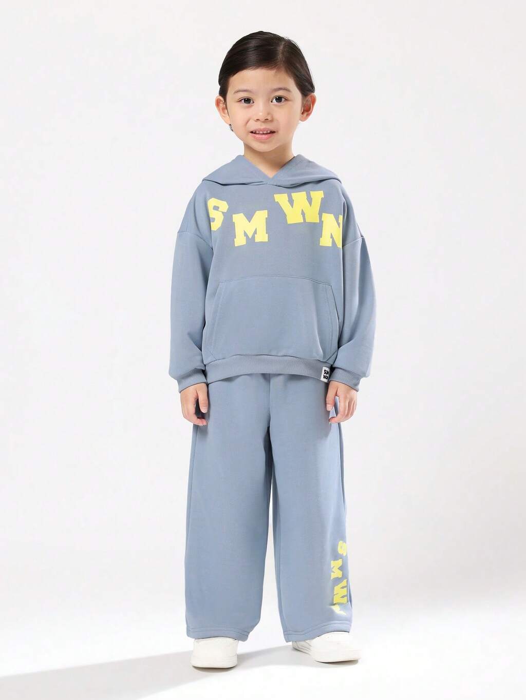 Kapuzenpullover mit Buchstaben-Print und passender Hose mit weitem Bein